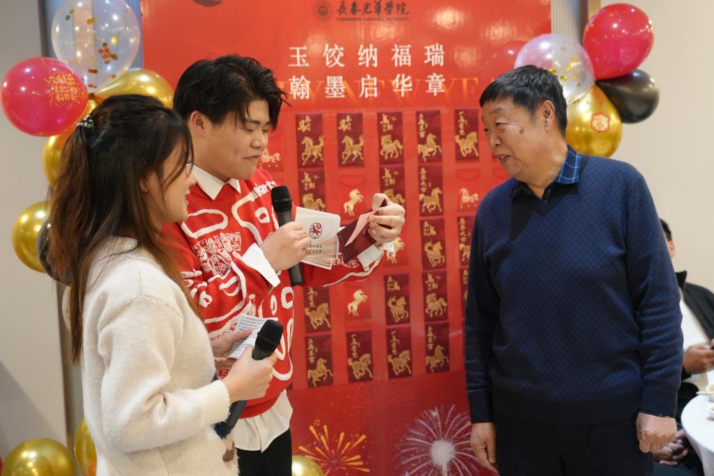 12月25日下午,北校区沐味咖啡暖意融融、笑语盈盈,我校一年一度的“玉饺纳福瑞,翰墨启华章”迎新年包饺子送福联活动在此温情启幕。学校领导班子成员,各教学院(部)负责人、各党总支副书记与师生代表欢聚一堂,以传统习俗为纽带,共叙师生情、同迎新年来。