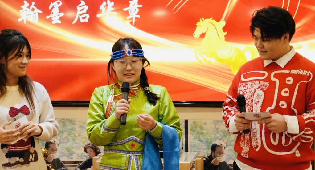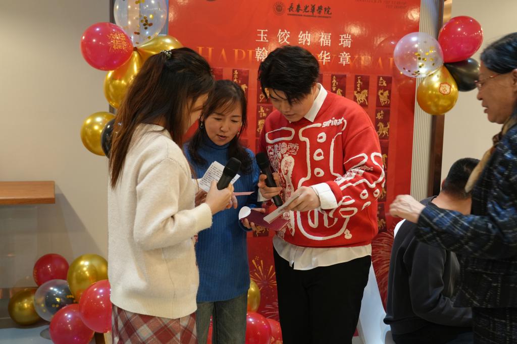 夜幕降临,热气腾腾的饺子陆续上桌,现场暖意更浓。来自维吾尔族、蒙古族、朝鲜族、东乡族、锡伯族等多个民族的学生代表轮番登场,分享家乡的新年习俗与特色美食,更有蒙古族的学生为在场老师们献上寄托着最美好祝愿的哈达,师生们围坐一桌,共品多元风味饺子与各民族特色佳肴,深切感受多民族交融共处的深厚情谊。活动尾声,现场颁发了 “创意饺子”“协作能手” 等特色奖项,幸运抽奖环节更是将氛围推向高潮,欢声笑语中,本次迎新年活动画上圆满句号。