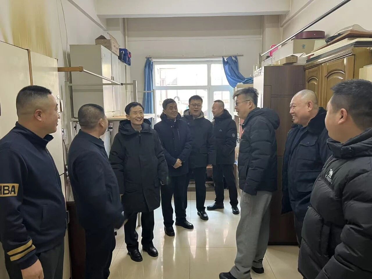 在南、北校区各门卫值班点,学校领导详细询问安全保卫相关安排,强调春节期间要持续筑牢安全防线,加强巡查值守,及时排查隐患,完善应急预案,确保校园安全稳定;在各学生公寓,学校领导与值班老师亲切交流,对他们放弃与家人团聚、坚守公寓值守岗位、守护学生住宿环境安全的付出表示衷心感谢;在水电暖值班室,学校领导仔细检查设备运行与维护记录,叮嘱值班人员务必做好供应保障,确保设施平稳运行;在东校区,学校领导对在岗值班人员的敬业奉献表示衷心的感谢并与大家合影留念;在大学生实习就业基地,厉刚副校长嘱咐大家要提高安全防范意识,加强巡逻,细致排查,确保消防、水电、安防等各个环节万无一失。