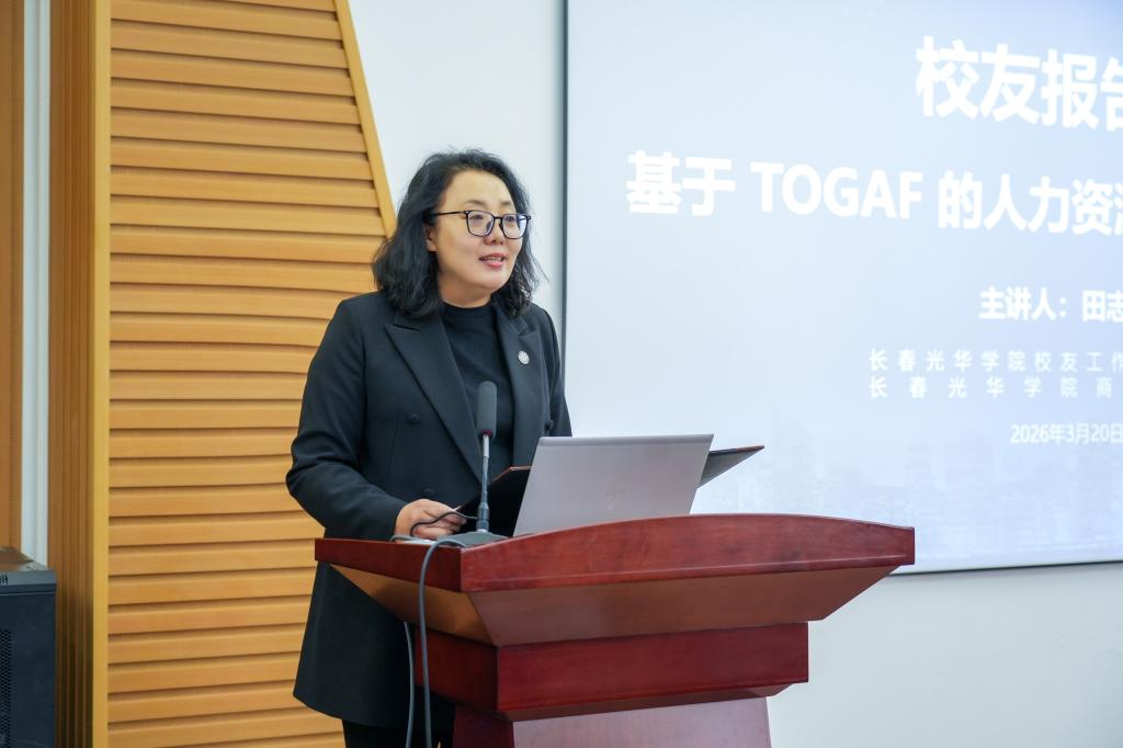 为深化校企协同育人机制,发挥优秀校友示范引领作用,3月20日下午,长春光华学院在英华楼214教室举办优秀校友专题报告会。本次报告会特邀2007级工商管理专业优秀校友、中国第一汽车集团HR业务架构师田志伟担任主讲。学校副校长栾学钢、副校长兼党委副书记高海英,商学院院长周佰成、现代教育学院院长刘国权,校友工作办公室全体成员及商学院、电气信息学院、现代教育学院相关专业师生参会。报告会由周佰成院长主持。