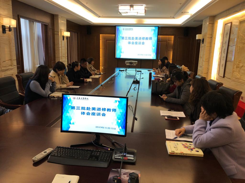 通过此次赴美进修体会座谈会了解到,教师通过进修,了解了国外先进教学理念和授课方法,提高了教学水平,拓展了国际化视野。以后,学校会让更多的教师有机会到国外学习,将先进的教学方法和理念应用到课堂教学中,服务于教学,使学生真正受益。(供稿:教师教学发展中心 苏贺 编辑:赵健)