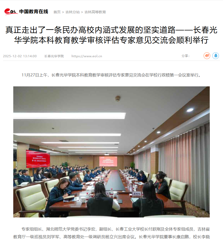 中国教育在线|真正走出了一条民办高校内涵式发展的坚实道路——长春光华学院本科教育教学审核评估专家意见交流会顺利举行